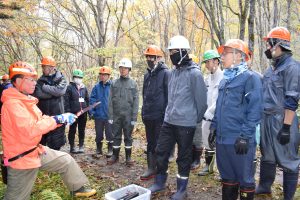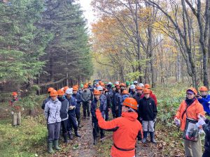 10月22日(水)、フィールド学習で遠軽町(丸瀬布)に行き、林業体験として「オホーツクおとの森協定林」のアカエゾマツ枝打ち作業、工場見学で「ヤマハミュージッククラフト北海道」を訪問しました。この学習の目的はオホーツク地域の主要産業の理解を深めるものです。
