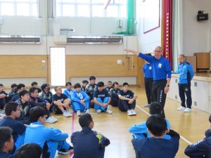 昨年に引き続き2年目となりましたが、10月28日(火)の3校時に全校縦割りのAグループ、4校時にBグループに、「学校法人日本体育大学」よりお招きした大海二朗先生と宗平幸晴先生による特別授業が行われました。