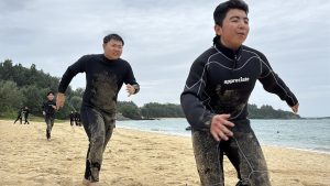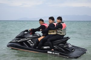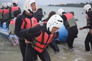 美ら海水族館の見学、マリンスポーツ体験を行いました。あいにくの雨模様でしたが、マリンスポーツ時は雨がやみ、沖縄の自然を思う存分満喫した日となりました。