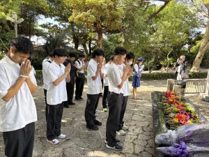平和祈念資料館、ひめゆり平和祈念資料館を見学、日本で唯一地上戦が行われた、現在に残る戦争の爪痕を肌で感じることができました。
