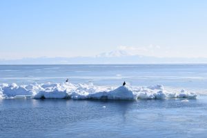 残念ながら前日からの南風により、流氷が沖に遠ざかっていて、ほとんど見ることができませんでした(涙)それでも見ることができた貴重な流氷に乗っているオオワシを見ることができ、オホーツク海のクルージングを楽しむことができました。