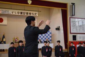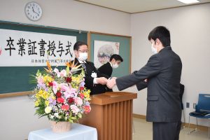 インフルエンザに罹患した卒業生は式には参列できなかったものの、別室にて校長先生から卒業証書を授与されました。